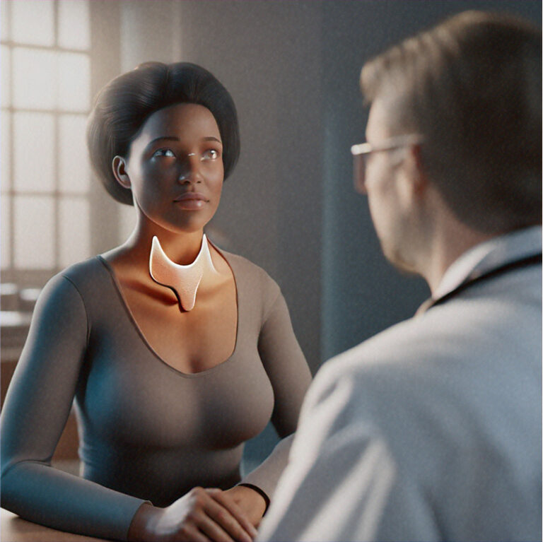 Excesso de produção de hormônios tireoidianos, causando perda de peso, palpitações, ansiedade e aumento da sudorese. O tratamento pode incluir medicamentos, terapia com iodo radioativo ou cirurgia.